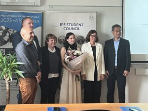 Mlada raziskovalka Katarina Žiberna je 26. 9. 2025 pod mentorstvom prof. dr. Andreje Benčan Golob in prof. dr. Hane Uršič Nemevešek na Mednarodni podiplomski šoli Jožefa Stefana uspešno zagovarjala doktorsko disertacijo z naslovom: Lokalne mehanske lastnosti perovskitnih oksidnih feroelektričnih materialov.
