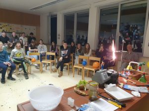 Dne 16. 1. 2026 sta naša sodelavka K5, Mirela Dragomir, in sodelavec K2, Matic Lozinšek, obiskala Gimnazijo Litija in dijakom ter učencem tamkajšnje osnovne šole med Naravoslovnim popoldnevom predstavila kemijske poskuse. Eksperimenti so trajali približno eno uro, sledila pa je predstavitev njunega raziskovalnega dela in diskusija. Dijakom so bili poskusi zelo všeč!